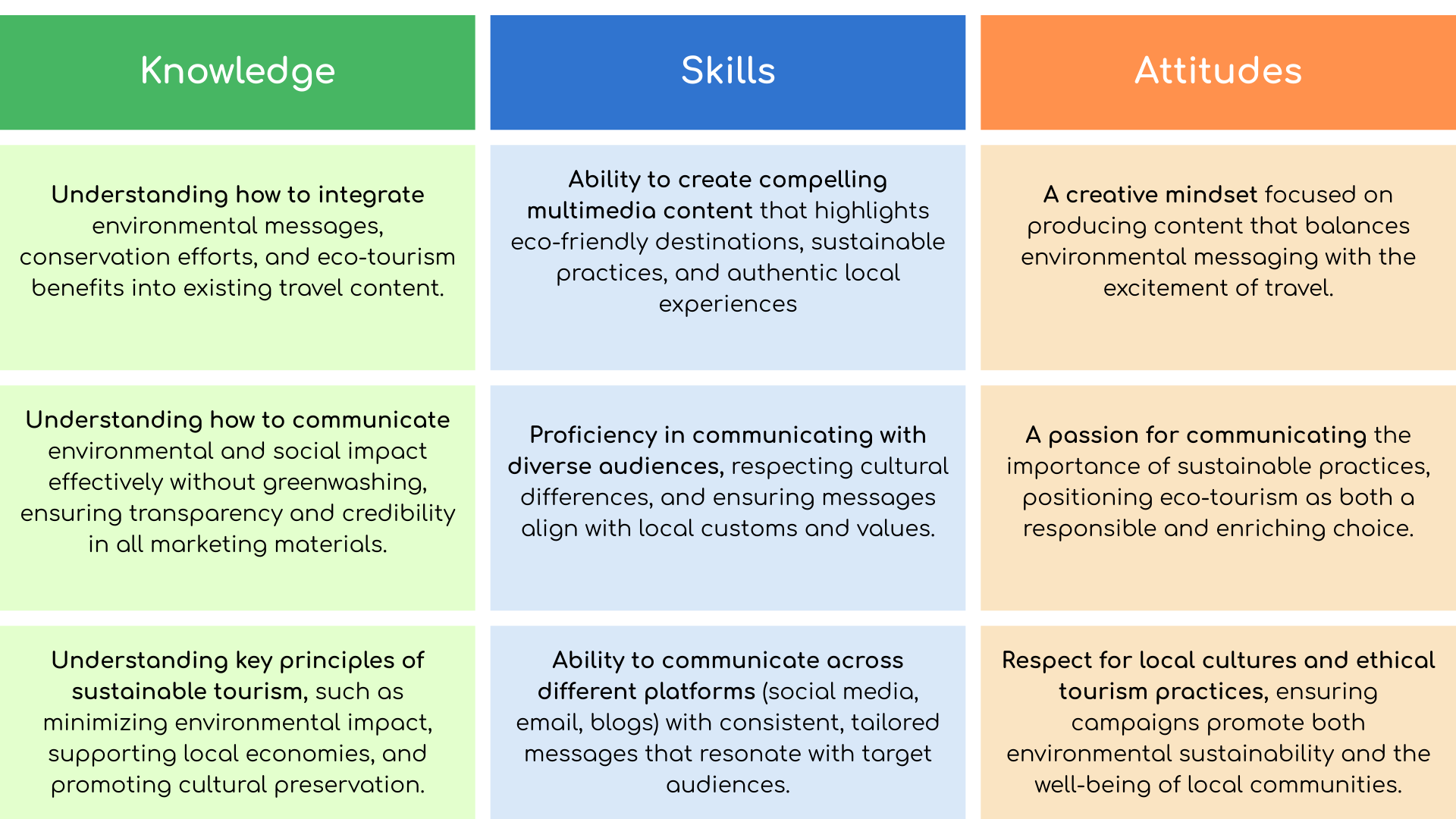 By the end of this module, learners will be able to design and implement authentic marketing campaigns for ecotourism that effectively communicate sustainability and engage diverse audiences.