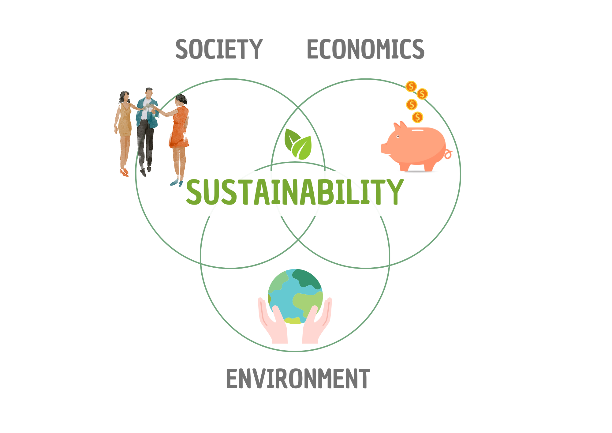Essentially, the three pillars underline the fact that purely environmental sustainability is not enough on its own, as economic, social and environmental processes are always interconnected.